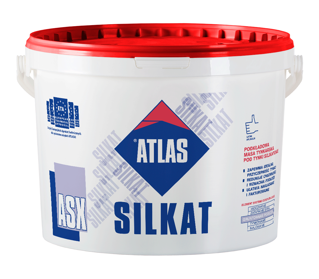 Gruntuje podłoża pod silikatowe tynki cienkowarstwowe ATLAS SILKAT. Tworzy tymczasową ochronę dla elewacji – przez pół roku stanowi ochronę nieotynkowanej elewacji przed warunkami atmosferycznymi.