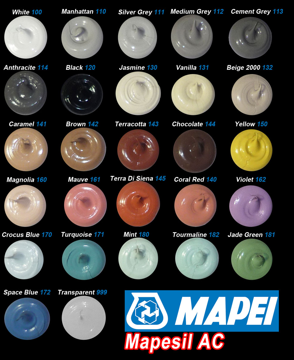 Zarówno wewnątrz, jak i na zewnątrz budynków do uszczelniania połączeń dylatacyjnych w posadzkach ceramicznych i ścianach, o rozszerzalności do 25% w stosunku do stanu początkowego, do stosowania w basenach pływackich, łazienkach i kabinach prysznicowych. Mapesil AC może być także stosowany do tworzenia idealnie elastycznego uszczelnienia pomiędzy różnymi elementami konstrukcji, urządzeń inżynierskich, przy budowie statków, samochodów itp. UWAGA! Mapesil AC ma doskonałą przyczepność do szkła, ceramiki i anodowanego aluminium. Po wcześniejszym zagruntowaniu preparatem Primer FD — ma dobrą przyczepność także do drewna, metalu, powłok malarskich, tworzyw sztucznych, gumy itp. Mapesil AC odpowiada klasie F-25-LM w zakresie normy ISO 11600.