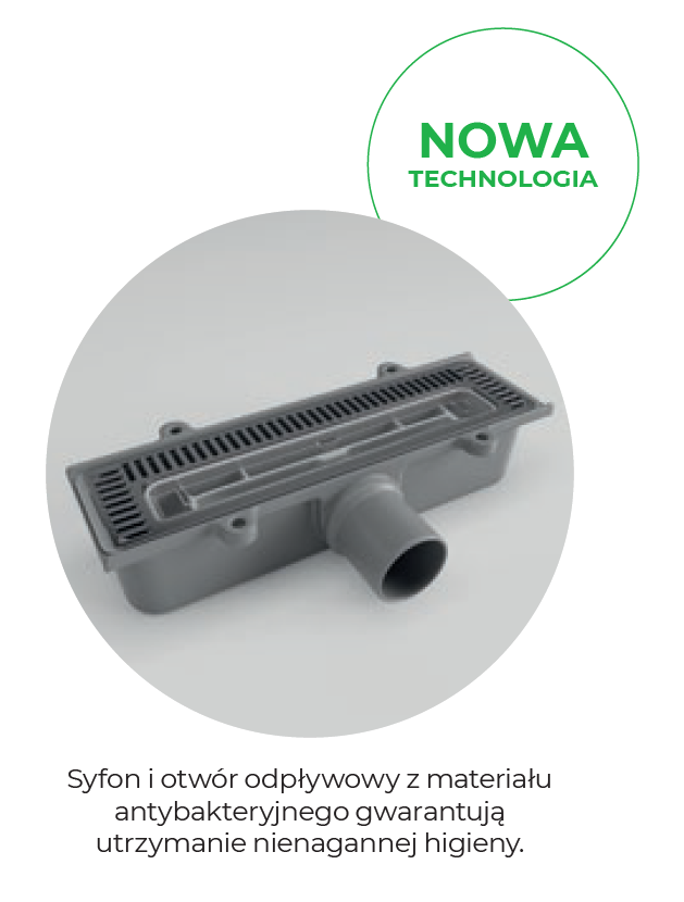 wersja z poziomym syfonem odpływowym DN40 (przepływ 50 l/min)