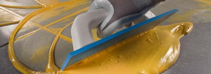 Nakładanie: gumową pacą MAPEI lub zacieraczką mechaniczną.