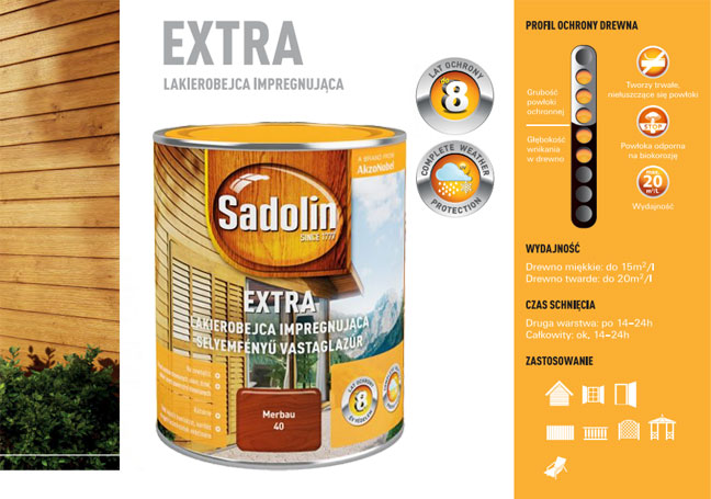Sadolin Extra lakierobejca dekoracyjno-ochronna to nowoczesna lakierobejca ochronno-dekoracyjna przeznaczona do zabezpieczania drewna na zewnątrz.
