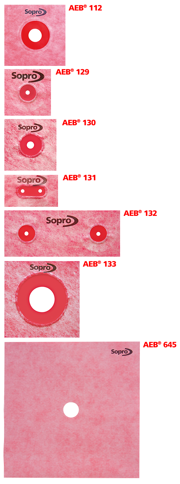 Uszczelki ścienne dwustronnie pokryte specjalną powłoką z flizeliny, do niezawodnego uszczelniania wszystkich typowych przejść rur pod okładziny z płytek i płyt ceramicznych oraz kamienia naturalnego. Przy wykonywaniu powłok uszczelniających z zastosowaniem np. mat Sopro AEB® i Sopro AEB® plus oraz uszczelnień Sopro DSF® 423/523, Sopro TDS 823 i Sopro FDF 525.