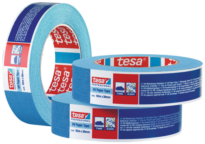Taśma maskująca tesa® 4435 UV Paper Tape nadaje się do stosowania z wszystkimi rodzajami farb. Dzięki połączonym właściwościom materiału nośnika oraz specjalnie opracowanej substancji klejącej, taśmę można usunąć łatwo i bez pozostawiania śladów do 2 tygodni od jej zastosowania na zewnątrz pomieszczeń. Dzięki temu można wykonać wiele różnych prac, zabezpieczywszy powierzchnię tylko raz.